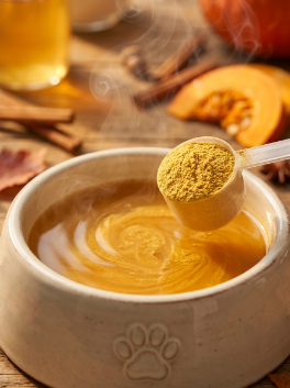 You might think creating a cafe-worthy beverage for your pet is complicated, but finding a safe Pumpkin Spice Latte For Dogs Recipe has never been easier. With this 4oz canister, the recipe requires zero prep work. All you need to do is just add water! You can serve it immediately as a hydrating drink, or for extra enrichment, you can freeze it in your pet’s favorite treat mold or lick mat to keep them stimulated and entertained. For an indulgent snack, you can even top it with a little dog-safe whipped cream.